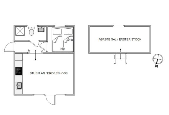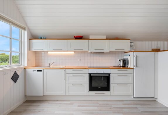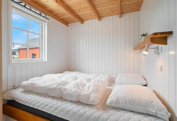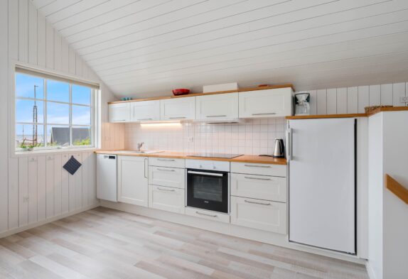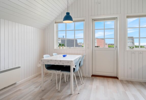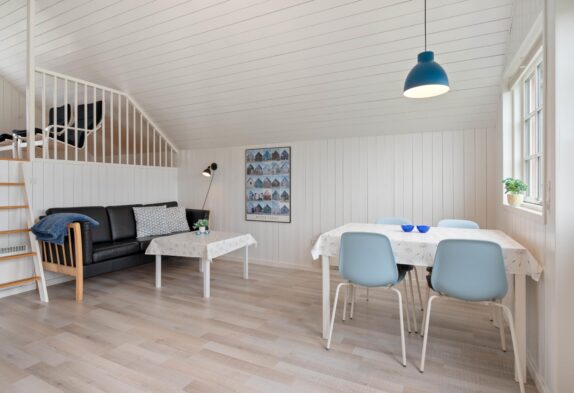 Denne charmerende lille fiskerhytte er godt placeret midt i Hvide Sande og indrettet med lyst og moderne inventar. Køkken og stue er i åben forbindelse og kigger man op, er der her lavet en lille hyggekrog med tv og lænestole. Der er ingen danske kanaler i huset.