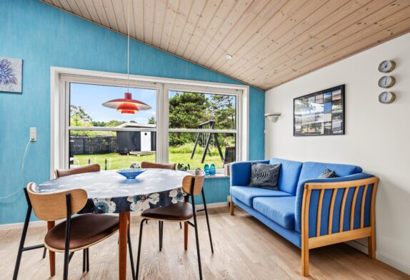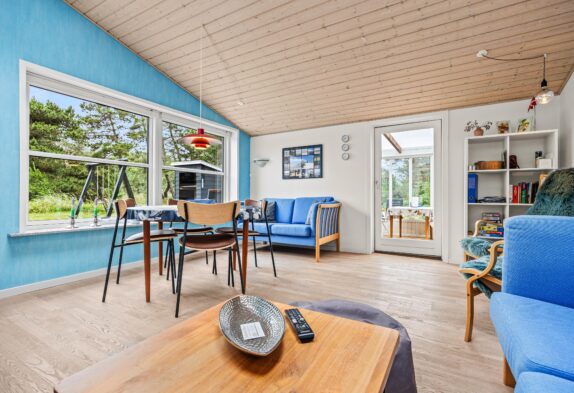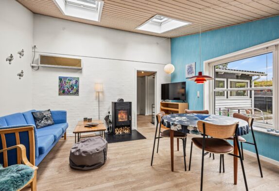 Ovenlysvinduet i stuen sørger for et rigtig fint lysindfald, og derudover er der en brændeovn, som med sine knitrende flammer skaber en rigtig hyggelig atmosfære på de kolde dage. Huset bliver desuden hele året rundt hurtigt opvarmet med den energibesparende varmepumpe.