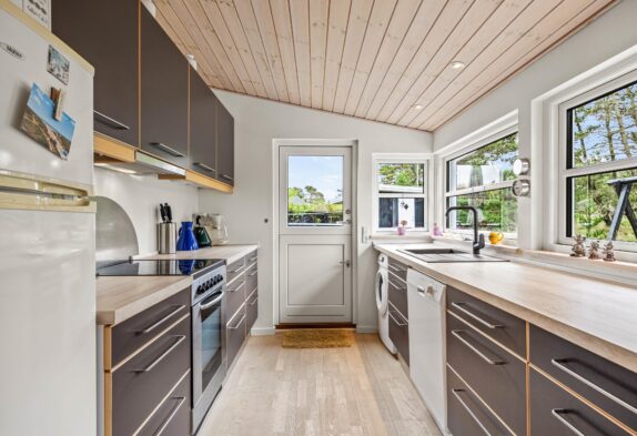 Med ferieadresse på Kratvej 32 i Vejers er rammerne sat for en idyllisk ferie i fredfyldte omgivelser. I det moderne køkken med opvaskemaskine kan hele familien samles om dagens madlavning. Meget praktisk er køkkenet placeret lige ved siden af stuen med integreret spiseafdeling.