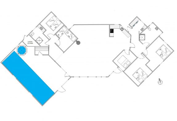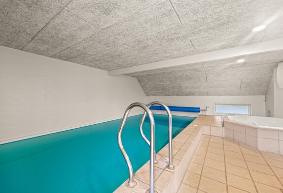 Lækkert poolhus med spabad, sauna og legeplads i haven