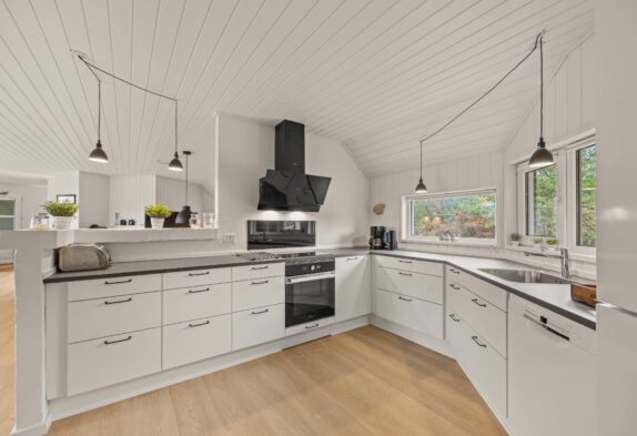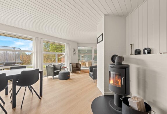 Udenfor i haven gemmer der sig en masse highlights for børnene – ikke mindst den lille legeplads med sandkasse, gynge, klatrestativ og trampolin. Det er nemt at holde øje med børnene fra den åbne terrasse, som er udstyret med gode havemøbler, så I alle kan få en god plads i solen. Der står heller intet i vejen for en lækker grillaften på en lun sommeraften.