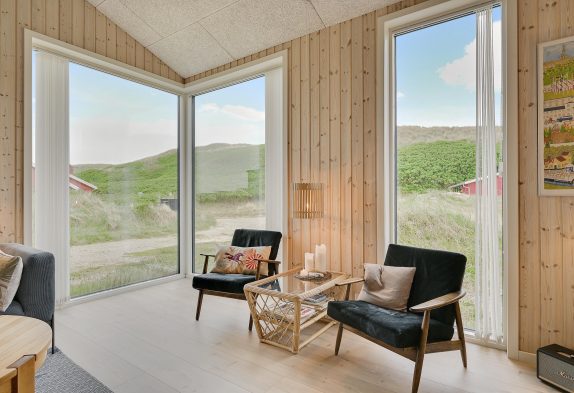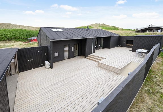 Dette sommerhus har en helt unik og skøn beliggenhed, kun 150 m fra Vesterhavet. Der er 3 soveværelser i huset, som er opført i gode materialer og i en spændende arkitekttur. Badeværelserne er godt indrettet med bruseniche. Køkkenet ligger midt i huset og opholdsstuen er placeret seperat. Naturligvis er der brændeovn, et godt fladskærms-TV.
