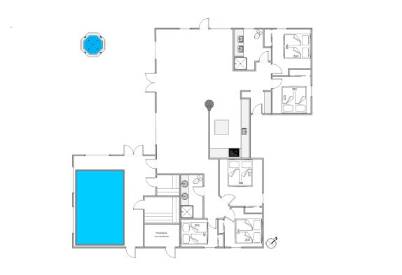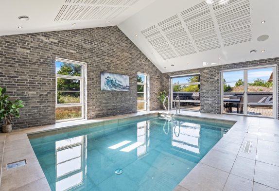 Det storslåede sommerhus i Blåvand råder blandt andet over en 30 kvadratmeter stor indendørs swimmingpool, et udendørs spabad til 4 personer og en stor sauna. Ligegyldigt, om I skal holde ferie med familien og børnene eller med vennerne, er I garanteret underholdning for alle her. Efter en forfriskende dukkert kan I samles til fælles madlavning i det veludstyrede køkken.