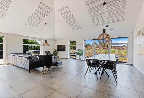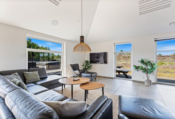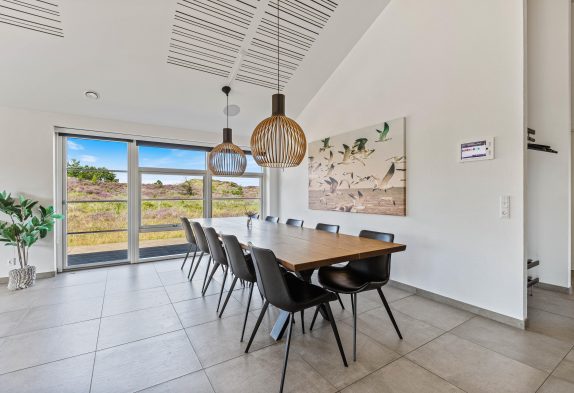 På Vestslugen 8 finder I alt, hvad feriehjertet begærer. Sommerhuset har ikke kun god plads til 10 personer og 1 hund, men er også udstyret med swimmingpool og wellness – og så er der kun 500 meter til stranden. Dette nybyggede (2019) luksushus er et sandt ferieparadis, som ligger frit på et stort fredet lyngareal med langt til naboerne og stadig tæt på by og strand.