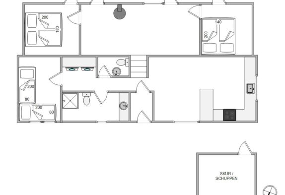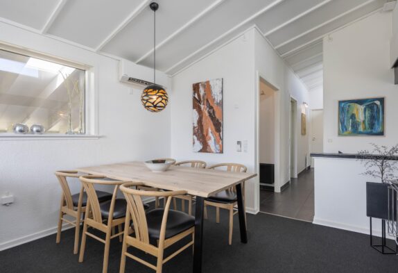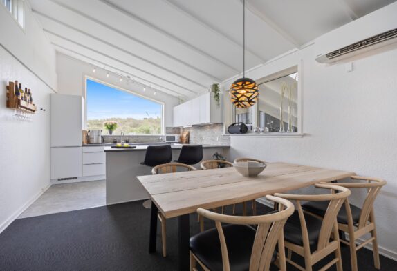 Her er plads til 6 personer, fordelt på 3 værelser, hvoraf 2 er med en dobbeltseng og det sidste værelse er med 2 enkeltsenge. Med både et gæstetoilet og et større badeværelse, undgår man kø, når der skal børstes tænder. Desuden sørger en kombineret vaskemaskine og tørretumbler for at man kan pakke let, når familien skal på ferie.
