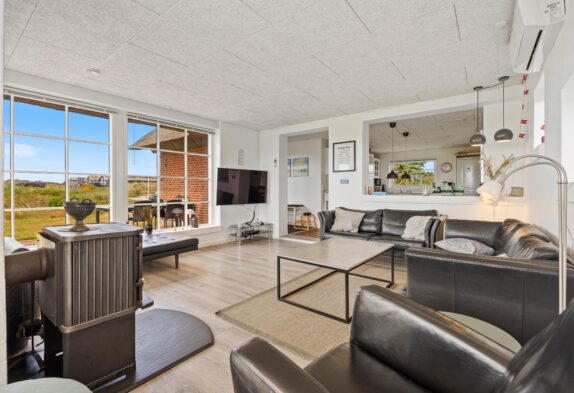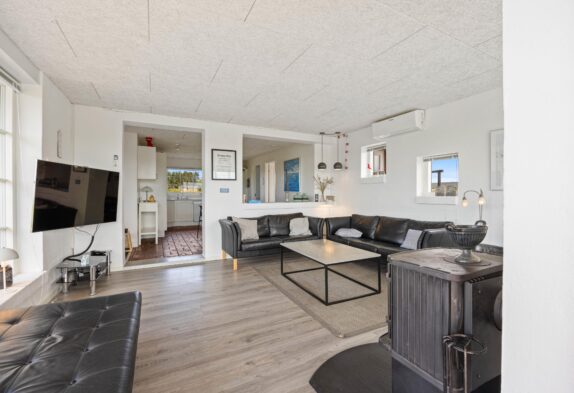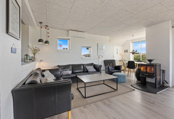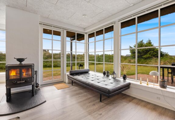 Sommerhuset er naturligvis indrettet med en brændeovn, som altid sørger for dejlig varme og hyggelig ferieatmosfære. Her kan I smide fødderne op, se ynglings serien i tv’et (chromecast), åben en god bog eller drik et glas rødvin, alt imens flammerne knitrer i baggrunden – meget mere afslappende bliver det næppe!