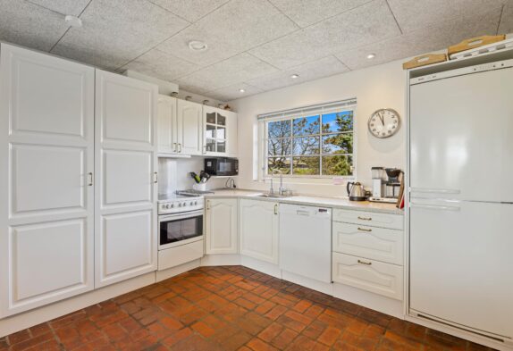 Sommerhuset indeholder i alt to badeværelser, som i 2019 er blevet renoveret og fremstår lyse og venlige. Her behøver I ikke at frygte for kolde fødder i vintermånederne – begge badeværelser er udstyret med gulvvarme. Sovepladserne fordeler sig på fire soveværelser, hvor det ene er med en stor dobbeltseng på 180×200, to værelser med en dobbelseng på 140×200 og det sidste værelse med en enkeltseng.