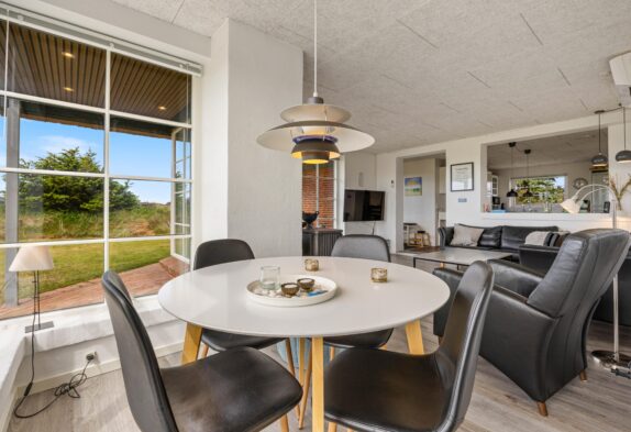 Den brede sandstrand ligger kun 650 meter fra sommerhuset, og på en gåtur langs vandet i den friske havluft kan I tanke nye kræfter, mens børnene og hunden udforsker de spændende omgivelser. Her viser naturen sig året rundt fra en ny side.