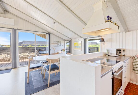 Her har I muligheden for at holde ferie i et virkeligt hyggeligt feriehus på Arvidvej 144 i Bjerregård. Sommerhuset har en fin delvist overdækket og helt lukket terrasse, hvilket er helt perfekt, hvis du har småbørn eller din firbenede ven med på ferien. I feriehuset er der en hyggelig brændeovn, som sætter prikken over i’et til feriestemningen.