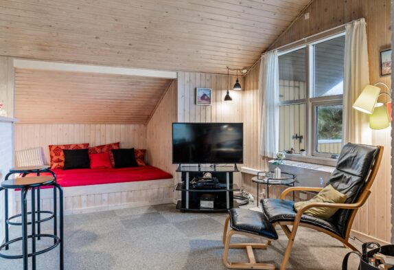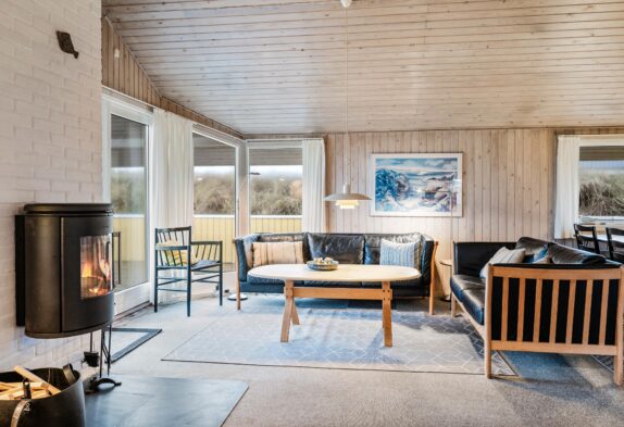 Dette hyggelige feriehus danner den perfekte ramme om en skøn ferie ved Vesterhavet, såvel sommer som vinter. Sommerhuset har alt, hvad op til 6 personer behøver for at føle sig rigtig godt tilpas. Den indbydende stue er pænt møbleret med gode møbler og har desuden brændeovn og en hyggelig alkove.