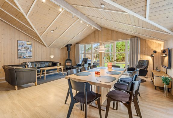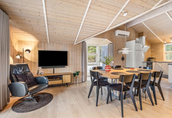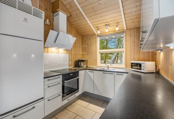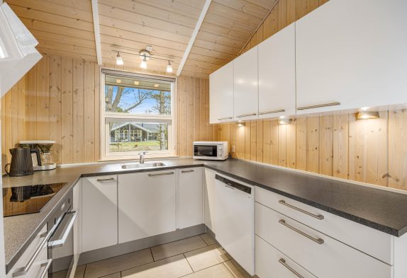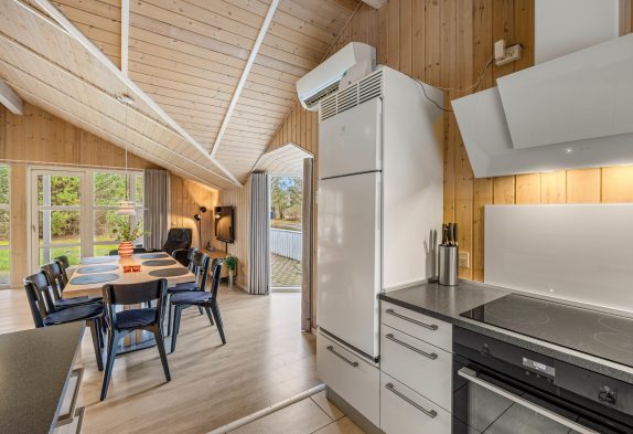 Husets hjerte og samlingspunkt er det lyse køkken-opholdsrum, hvor der er højt til loftet og plads til det hele. Den fine køkkenafdeling fra 2020 har alt, hvad der er nødvendigt til en god ferie, bl.a. 100 l. fryser, mikroovn og opvaskemaskine, så alle kan bruge tiden samvær og oplevelser.