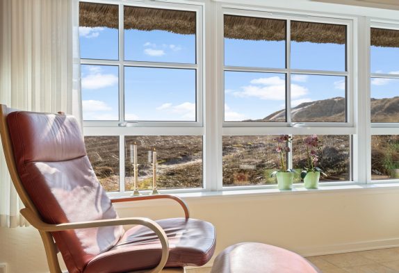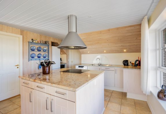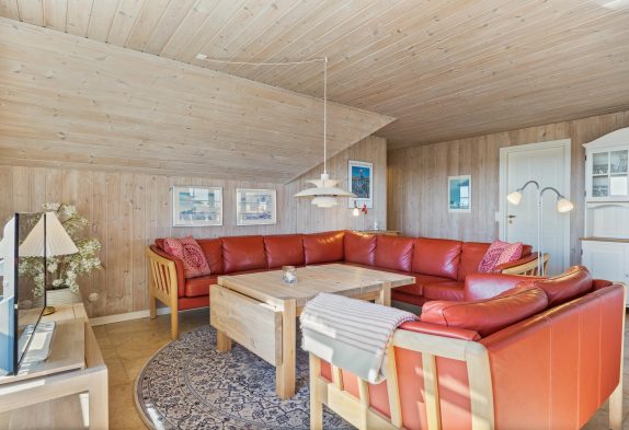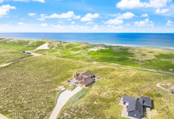 Dette store og flotte sommerhus er bygget i mursten, har stråtag og opfylder de vildeste drømme om en fantastisk ferie. Feriehuset er stort og rummeligt og har en flot indretning. Fra den hyggelige stue er der udsigt til endeløse hedeområder og de høje klitter. Her er et velindrettet køkken og flot opholdsstue, der står i åben forbindelse med hinanden med klinkegulve og gulvvarme.