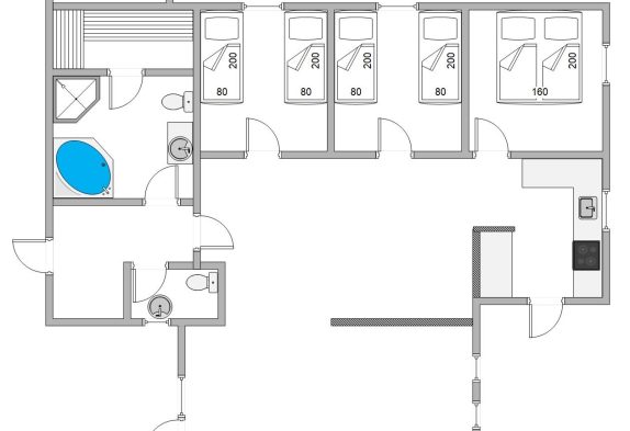 Sommerhusets 3 soveværelser har alle klinkegulve og boksmadrasser. Et stort flot badeværelse med boblebad og sauna, samt gæstetoilet fuldender indretningen. Her kan I rigtig få slappet af efter en god dag naturen.