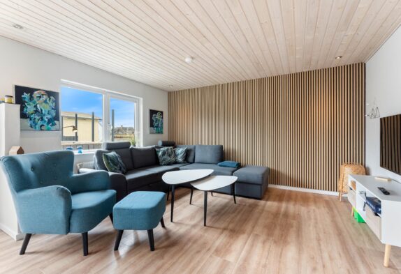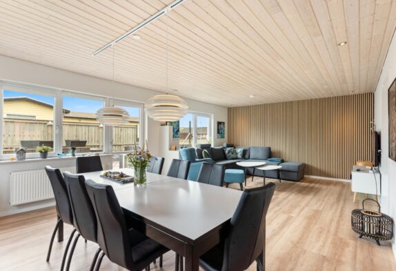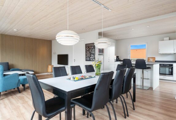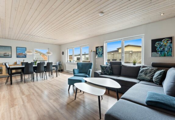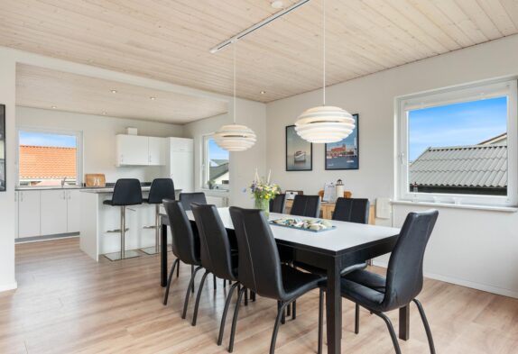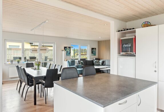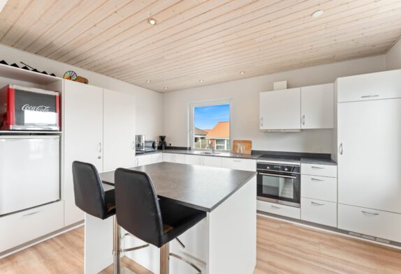 Vinbjergvej 7 er blevet renoveret i 2019. I dette hyggelige feriehus finder I et flot lyst køkken med opvaskemaskine, induktionsovn og køleskab med separat fryser. Køkkenet er i åben forbindelse til stuen, som ligeledes er dejlig lyst. Stuen har en hyggelig sofakrog med flotte farver og her er også placeret en dejlig lænestol, hvor du kan nyde morgenkaffen med benene oppe og lade ferieroen sænke sig.