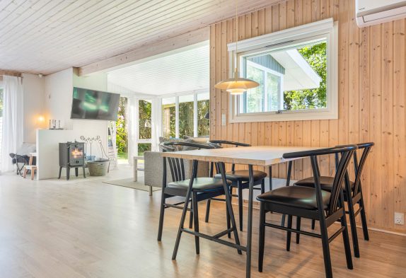 I dette skønne feriehus vil både I og jeres hunde føle jer hjemme fra første instans. Stue og køkken med tilhørende spiseplads hænger flot sammen og med det praktiske laminatgulv, er der altid en kølig plet for jeres hunde til en lille lur. Soveværelserne er indrettet i hjemlig stil med masser af lys, hvilket give gode muligheder for en behagelig søvn.