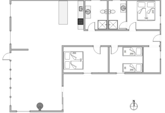 Dette dejlige feriehus har 3 skønne soveværelser. To med dobbeltseng og et med 2 enkeltsenge – til afslappende timers søvn efter en begivenhedsrig feriedag. De to badeværelser er udstyret med gulvvarme og rummelige brusekabiner. Du finder desuden både vaskemaskine og tørretumbler i bryggerset.