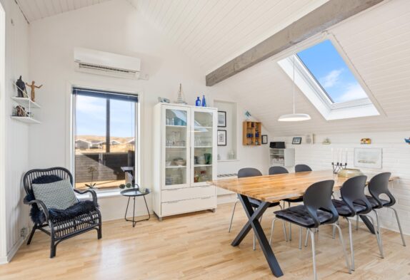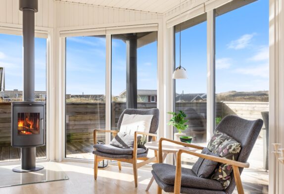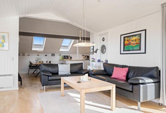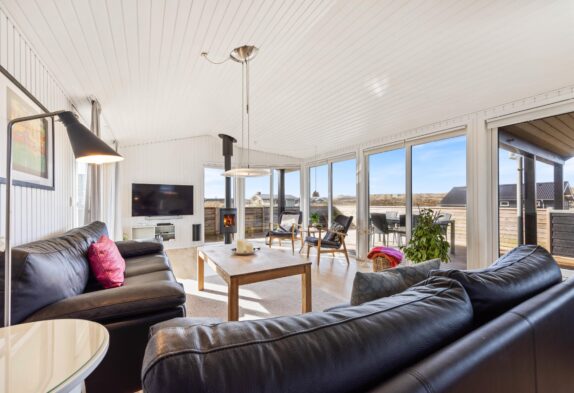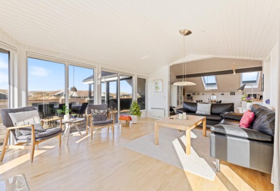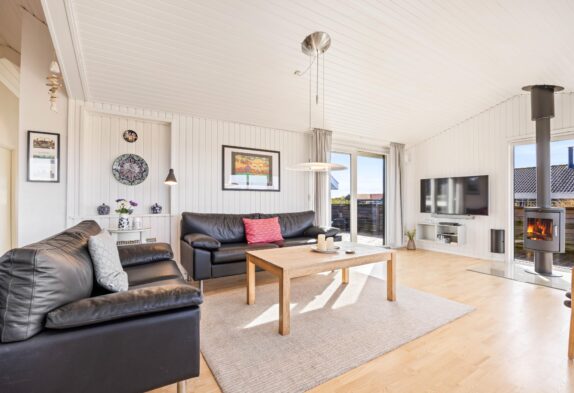 Stuen indbyder til afslapning. Udover, at du kan nyde din yndlingsfilm sammen med hele familien, har sommerhuset en energibesparende varmepumpe, som også kan bruges som klimaanlæg om sommeren. Dette giver altid mulighed for en behagelig temperatur i opholdsområdet.