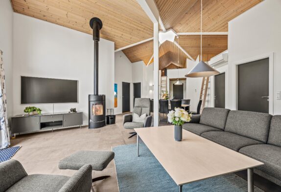 Feriehuset er udstyret med en varmepumpe, så I allerede fra morgenstunden er sikret en behagelig temperatur. Også brændeovnen bidrager hertil – ikke kun med varme på kolde dage på Danmarks vestkyst, når vinden piber, men også med hyggelig feriestemning.