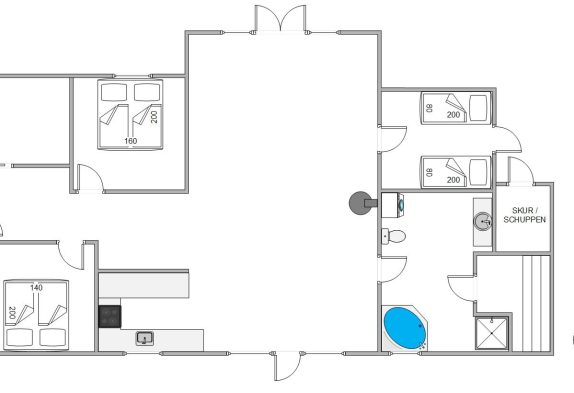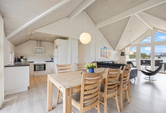Så er I endelig ankommet til feriehuset og I kan smide jeres tasker og gå på opdagelse i og omkring sommerhuset. Feriehuset er lyst og flot indrettet med køkken/alrum i åben forbindelse med stuen. Et skønt fællesrum, hvor der er plads til jer alle!