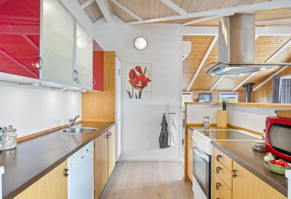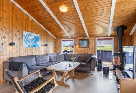 Køkkenet med opvaskemaskine og en separat fryser på 84 liter er åbent i forbindelse med spiseområdet og sofagruppen, så her kan alle have forskellige beskæftigelser, mens I alligevel er i kontakt med hinanden. Nyd varmen fra ilden i brændeovnen på kølige dage eller i aftentimerne. Den omkostnings- og energibesparende varmepumpe giver hurtigt en tilpas temperatur i sommerhuset.