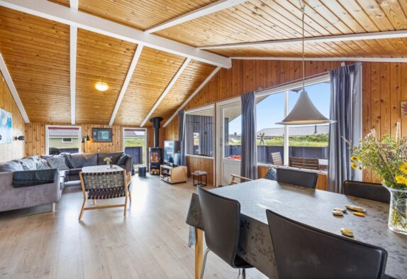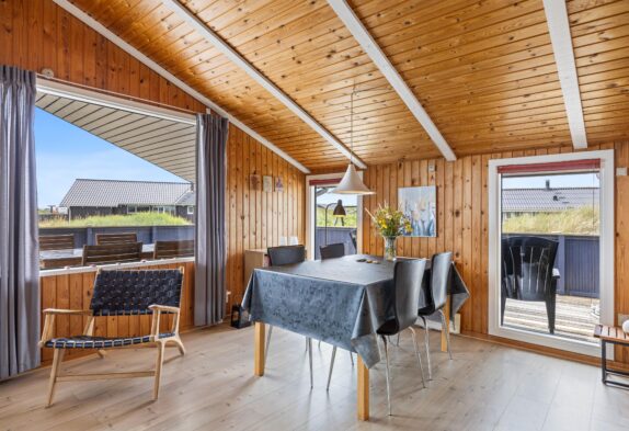 På den lukkede terrasse kan I slappe af i havemøblerne eller tage solbad i liggestolene imens børnene leger i sandkassen. Tænd op i grillen til aften og nyd et lækkert grillmåltid sammen, imens skyggerne bliver lange. Bagefter kan I nå en tur til stranden, hvor I alle kan opleve solnedgangen i Vesterhavet – det er en oplevelse for alle aldersklasser.