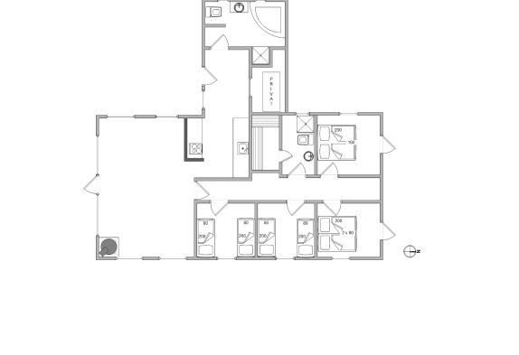 De 8 sovepladser er fordelt på 4 værelser – 2 med dobbeltsenge, og 2 med hver 2 enkeltsenge. I kan således fordele pladserne, som det passer jer bedst. I de 2 badeværelser er der gulvvarme, og i forbindelse med det ene- er også en sauna, hvor I kan varme musklerne godt igennem.