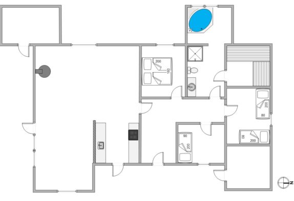 Badeværelset har gulvvarme og desuden en lille wellnessafdeling med boblebad og sauna, som er helt perfekt til afslapning efter en gåtur ved det brusende Vesterhav.
