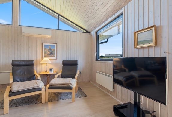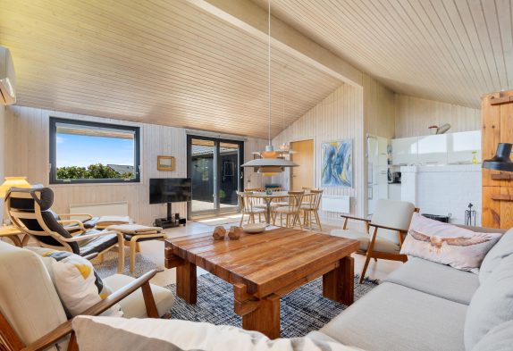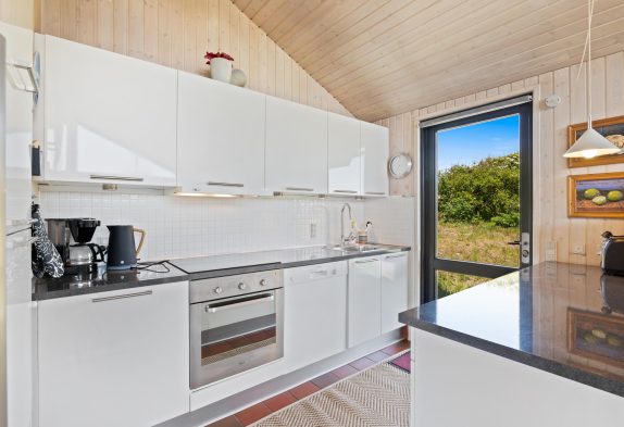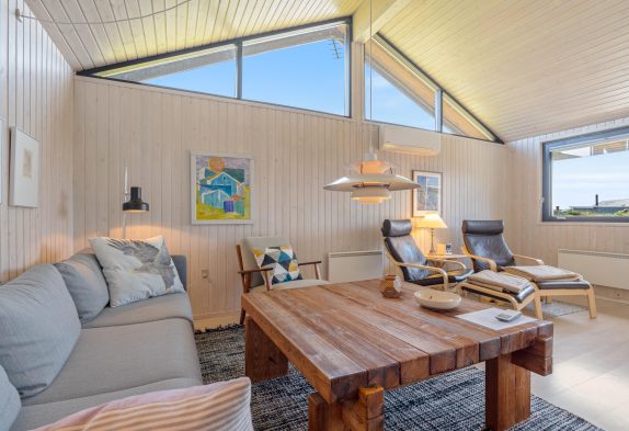 Fra hele sommerhuset har man udsigten til den storslåede natur i Bjerregaard, hvor der kun er få minutters gang til havet med den skønne badestrand, som indbyder til hyggelige stunder med familien på en varm sommerdag. Det brusende Vesterhav er dog et besøg værd året rundt, så hvis vejret ikke viser sig fra den bedste side, kan det alligevel klart anbefales at gå en tur til vandet.
