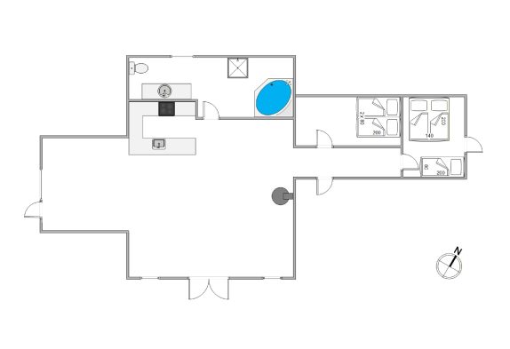 I stuen står brændeovnen også klar til at sprede varme og hyggelig feriestemning med sine knitrende flammer. Sommerhuset er indrettet med opvaskemaskine og vaskemaskine, som overtager de huslige pligter for jer og giver jer ekstra meget tid til at nyde ferien og samværet.