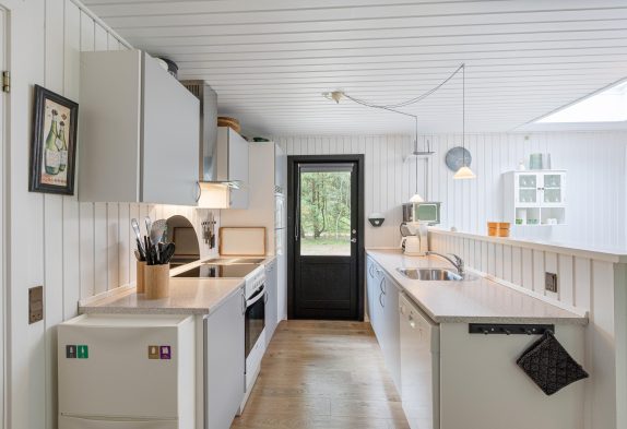 Lyst og venligt indrettet med opvaskemaskine, vaskemaskine og tørretumbler
