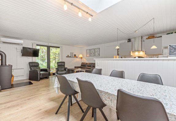Ro og afslapning står her i første række. Stuen med brændeovn og det åbne køkken indbyder til hygge og ikke mindst husets spa er det optimale sted til at få koblet af. Her på Rohdesvej 14 i Houstrup er der plads til, at 6 personer kan holde en dejlig ferie, fx ligge på terrassen og nyde sommersolen eller slappe af med en god bog i skyggen.