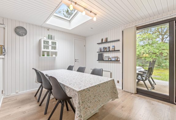 Ved dette hus i Houstrup har I 2 dejlige terrasser, den større er overdækket og har funktion som en åben udestue, med masser af dejligt lysindfald og samtidigt læ. Her kan du virkeligt forlænge sæsonen – og allerede i det tidlige forår sidde udenfor og nyde duften af lyng, hav og nåletræer.