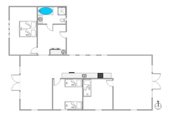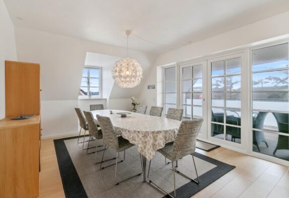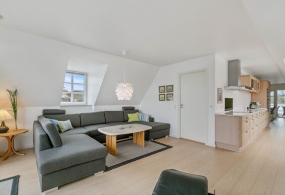 I den 115 m2 store lejlighed er der lagt vægt på at skabe en lys og moderne indretning med plads til hele familien eller parret. Spabadet står klar til at forkæle jer, og i hele lejligheden er der et flot lysindfald fra de mange vinduer. Køkkenet er stort og har masser af plads til, at feriekokken kan kreere familiens yndlingsretter.