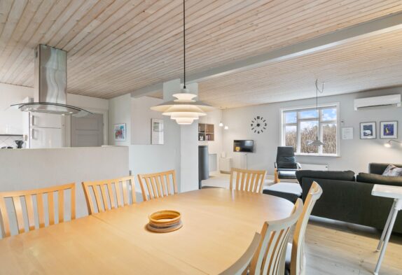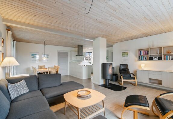 I det rummelige feriehus på Nordsøvej 51 er der plads til hele familien på 8 personer og 2 hunde. Der er rig mulighed for afslapning i spabadet og saunaen, og udendørs kan børnene bolstre sig på gyngerne og i sandkassen. Ud over at have en flot brændeovn er sommerhuset også indrettet med opvaskemaskine, tørretumbler og vaskemaskine, som klarer alt det praktiske.