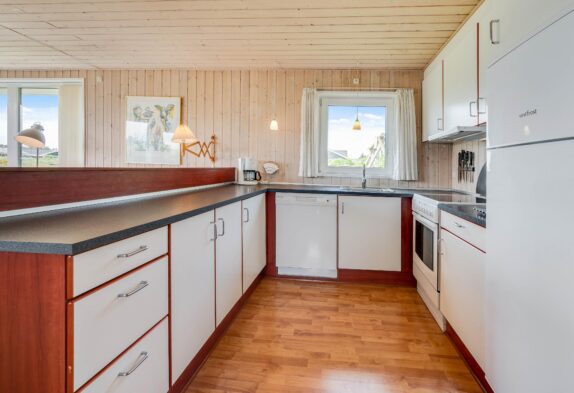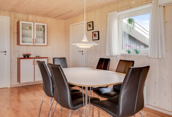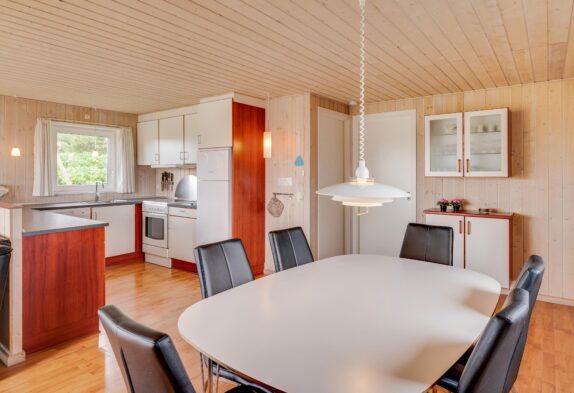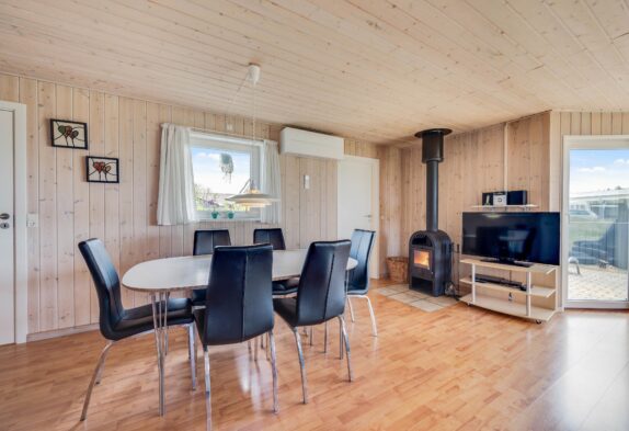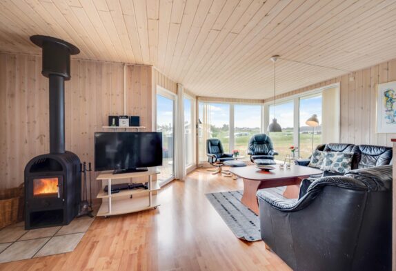 Den energibesparende varmepumpe sørger for et godt indeklima året rundt, og I kan også tænde op i brændeovnen, som både spreder varme og hyggelig feriestemning.