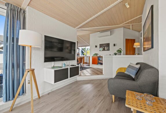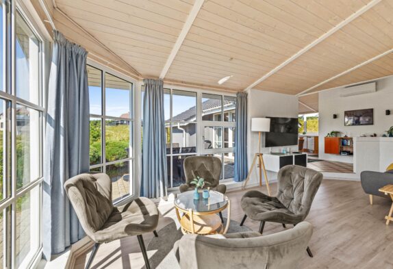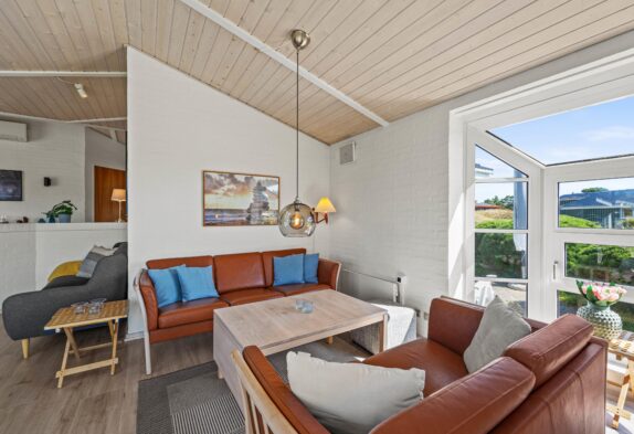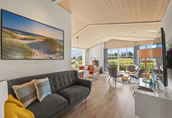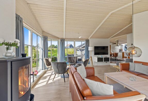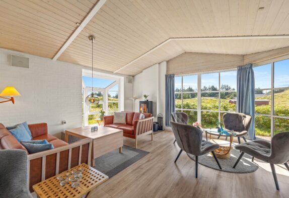 I det hele taget er det et feriehus med masser af lysindfald, så I kan nyde lyset i det lyse forår eller varme jer i solen på en kølig sommerdag. Om efteråret og vinteren kan I sidde ved brændeovnen i den velindrettede stue og se ud på Vesterhavets vilde vejr. Der er flere siddemuligheder, så man også kan trække sig lidt med en god bog eller sidde sammen i sofaen til en god film.
