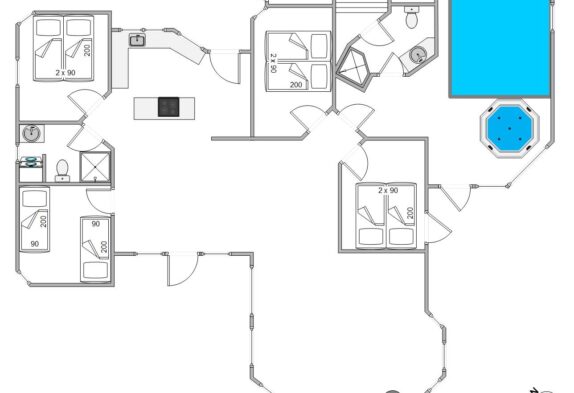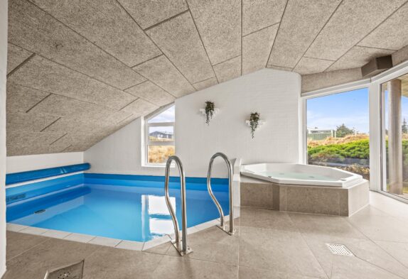 Sauna, spa og poolen med modstrømsanlæg kan bruges hele året rundt, uanset årstiden eller udetemperaturen. Poolen byder børnene på de bedste rammer for timevis af sjov, eller måske endda prøve deres første svømmetur eller måske er de voksne mere til ren afslapning i den boblende jacuzzi med den dejlige udsigt. Saunaen befinder sig en af de to badeværelser, hvor gulvvarmen sikrer jer varme fødder om morgenen.