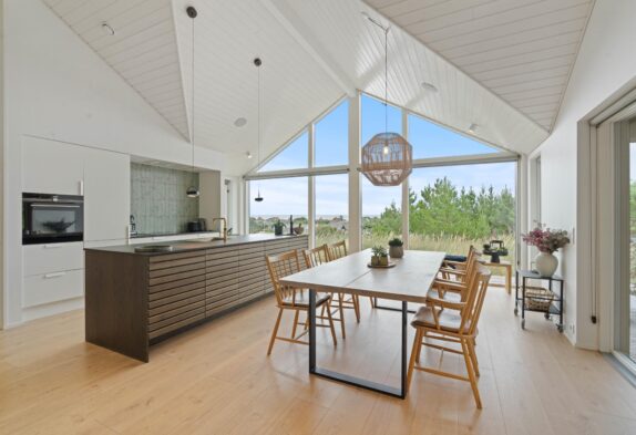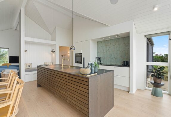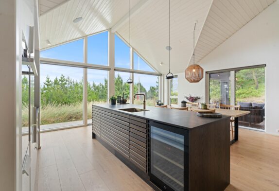 Hvis man leder efter et feriehus udover det sædvanlige og sætter pris på en ferie i smagfulde omgivelser, er dette sommerhus et rigtig godt valg. Huset er opført i 2019 og virkeligt smukt indrettet i gode kvalitetsmaterialer, både inde og ude.