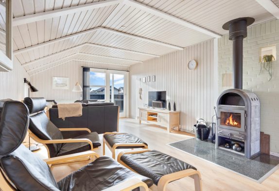 På de køligere dage lokker den hyggelige stue med sofa-hygge. Måske brætspil eller en god bog foran brændeovnen.