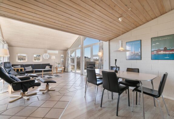 De store vinduespartier lukker en masse lys ind i huset. Især i det hyggelige køkkenalrum vil alle føle, at I næsten bor midt i den smukke vestjyske natur. Det er lige før, man ikke behøver et fjernsyn – man kan sidde og nyde udsigten til marehalmen, som står og nikker i vinden.