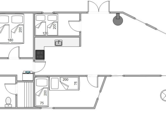 Fra det badeværelset er der adgang til en sauna, som er perfekt til afslapning efter en rask tur til vandet. Huset her er til 6 personer, fordelt på 3 soverum, heraf 2 med dobbeltsenge og 1 med enkelsenge.