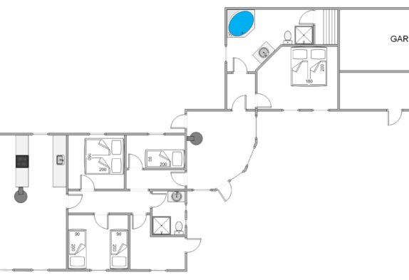 Med hele 2 badeværelser undgår man køen til tandbørstningen. I det ene badeværelse er der desuden en lille wellness afdeling med spa og sauna. Her kan der rigtig slappes af og løsnes op for ømme muskler efter en lang dag i klitterne eller ved stranden.