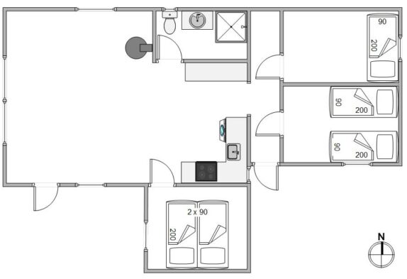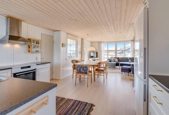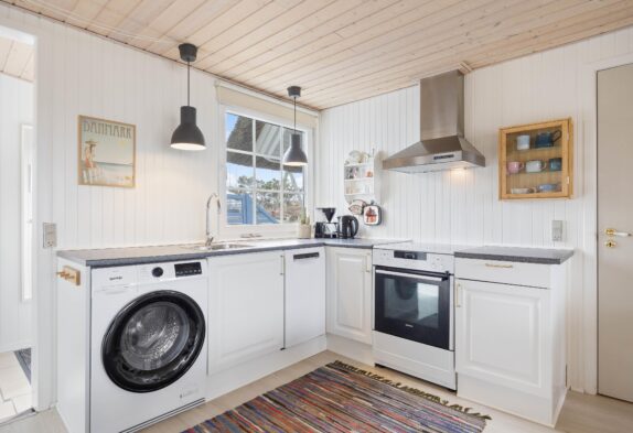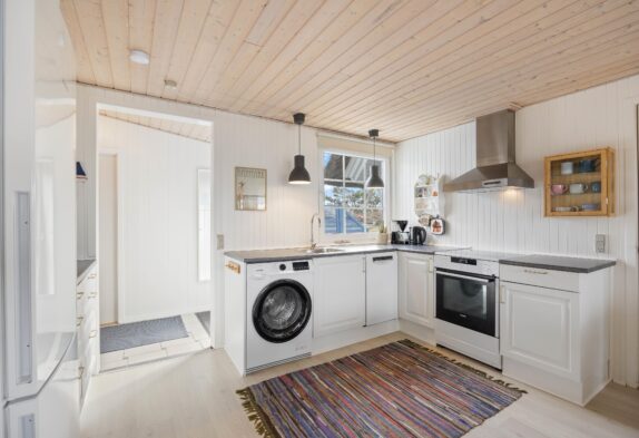 Sommerhusets hjerte er det store opholdsrum-spisestue med et velindrettet køkken-hjørne. Her finder du bl.a. 90 L fryser, mikroovn og opvaskemaskine, som alt sammen gør det nemt at stå for madlavningen.