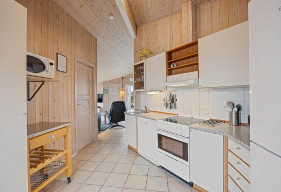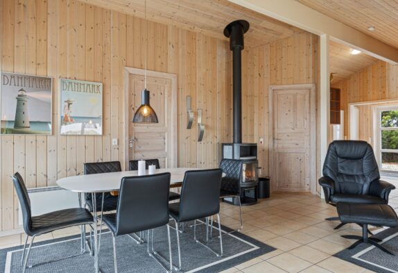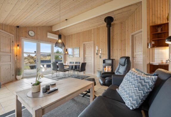 Dette hyggelige sommerhus har alt, hvad I som familie praktisk har brug for med vaskemaskine, tørretumbler, opvaskemaskine og mikroovn. Med internet, radio m/CD og fladskærms-TV er der sørget for underholdningen til rolige stunder eller regnvejrsdage. Brændeovnen midt i stuen giver en behagelig varme samt en helt særlig feriestemning. I kombination med husets varmepumpe vil jeres forbrugsbudget ikke stikke af.