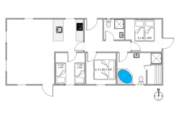 Den moderne og nyindrettede bolig garanterer både afslapning og velvære. Sommerhuset opvarmes af en energibesparende luft-til-vand-varmepumpe og har gulvvarme, så I altid kan nyde en behagelig temperatur. I det veludstyrede køkken går madlavning og oprydning nemt med induktionskomfur og opvaskemaskine. På badeværelset venter en sauna og en 2-personers spa, der er klar til masser af selvforkælelse og afslapning.