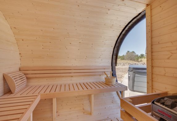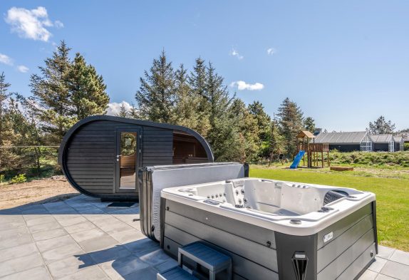 Terrassen byder desuden på et af sommerhusets absolutte highlights; her står det store udendørs spabad med plads til 6 personer. Der findes næppe en bedre måde at slutte dagen af på, end med en wellness-session i den boblende jacuzzi under den klare stjernehimmel.