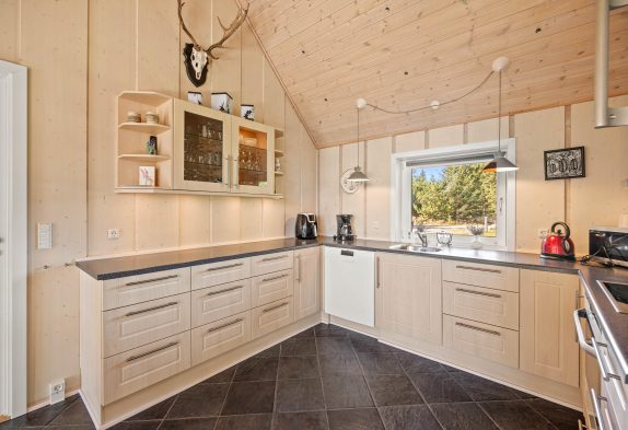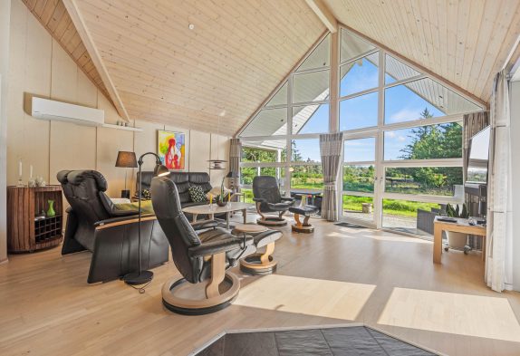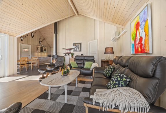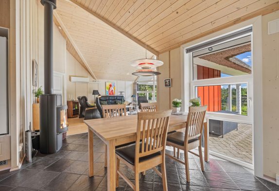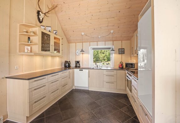 Helt igennem gennemført i sin stil, er dette feriehuset til dig, der drømmer om en luksuriøs afslapningsferie fjern fra byens uro. Allerede ved ankomsten kan du mærke forskellen til de typiske feriehuse – her har du en rummelig entre og plads til sko og jakker og i husets gæste-wcét står både vaskemaskine og tørretumbler til din rådighed.