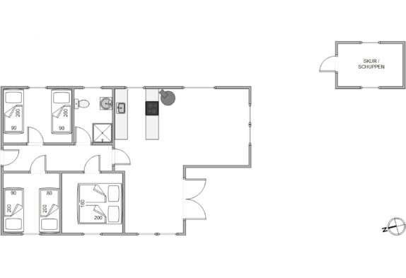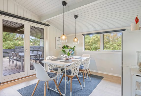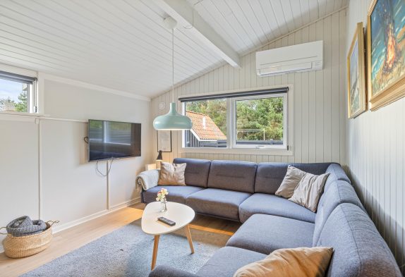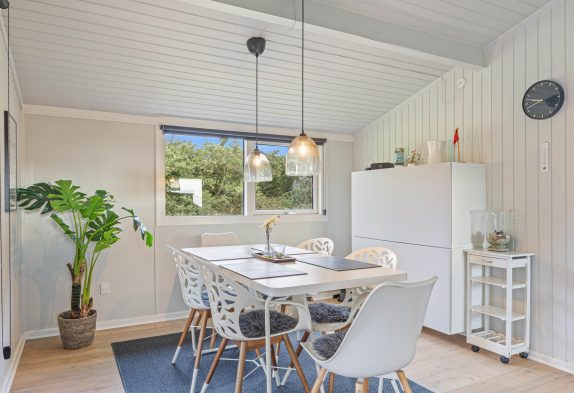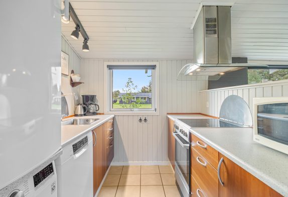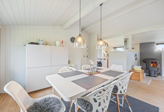 En ekstra stemningsspreder er selvfølgelig den klassiske brændeovn, som med sine knitrende flammer sørger for, at også de grå og blæsende feriedage bliver utrolig hyggelige. Og med opvaskemaskine i køkkenet får I endnu mere tid til at nyde feriehyggen, samværet og stilheden langt væk fra den travle hverdag.