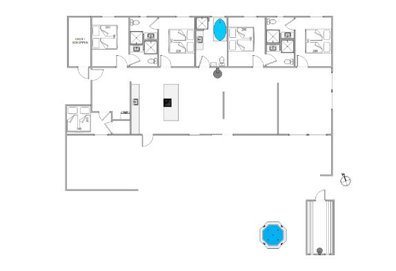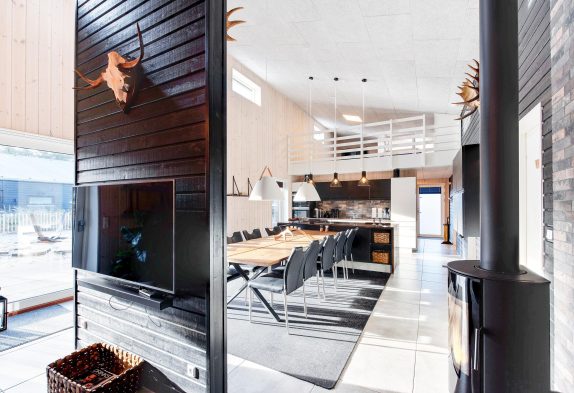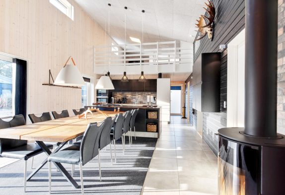 Sommerhusets hjerte er det store opholdsrum med integreret køkken og spiseafdeling. Her kan I mødes og lave god mad eller planlægge morgendagens udflugter i det hyggelige stueområde. Fra den store stue kommer I ind i aktivitetsrummet, hvor der både er mulighed for at slå sig løs med billard, bordtennis og dart.