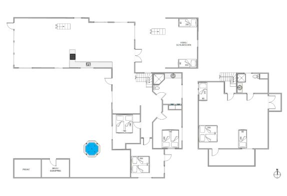Ud over de flotte indendørs omgivelser er der både balkoner på første sal og flere gode terrasser rundt om sommerhuset, der har en afskærmet såvel som en lukket del. På en af terrasserne finder I desuden et af sommerhusets absolutte highlights; det store udendørs spabad med plads til 6 personer, hvor I kan nyde en afslappende wellness-session i de varme bobler under åben himmel! Ikke dårligt, vel?
